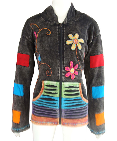 - Handmade Hooded Patchwork with hand embroidery and Stone Wash