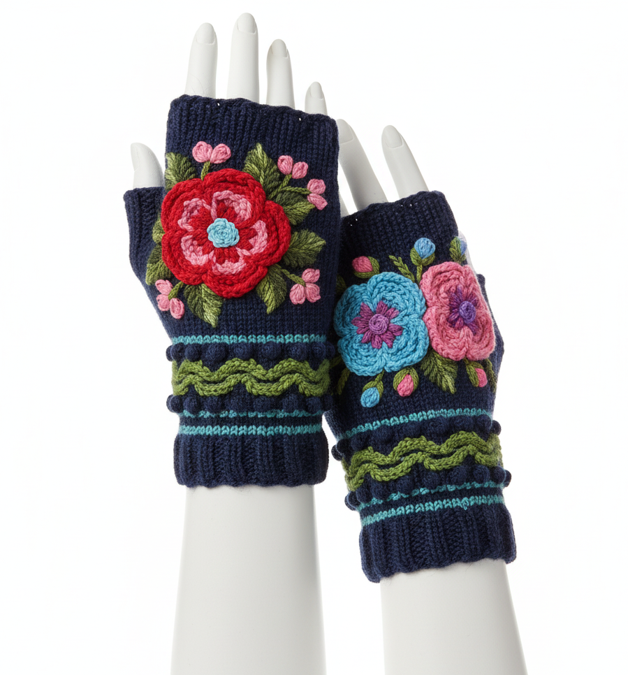 Bohemian Fingerless Wool Gloves | Hand-Knitted in Nepal | Hippie Festival Winter Gloves