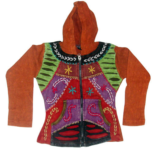 Razor Cut Hand Embroidery Children Jacket is very popular winter wear among the young people which is made of pure cotton of Himalayas and beautifully designed by our highly skilled worker with patchwork & razor cut. Cotton is most durable and strong fiber in the nature so this jacket will be long lasting and sustainable. It is western pattern hoody with unique customize design. This Razor Cut Hand Embroidery Children Jacket will be best for the cold winter. It has the zipper and front belly pocket design with full sleeve. It has the choices of the vibrant color which can make the winter more colorful. Clothing in Nepal, a leading handmade hippie clothing company manufacture and wholesale export all kind of hippie cloths around the world.