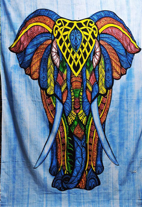 Clothing in Nepal, a leading handmade hippie clothing manufacturer and wholesale exporter offering the Elephant Art Handmade Cotton Tapestry. This vibrant piece, crafted in Nepal, features an intricately designed elephant motif, symbolizing strength, wisdom, and good fortune. Made from high-quality cotton, it’s perfect as wall décor, a bedspread, or even a picnic blanket, adding a unique cultural touch to any space.
