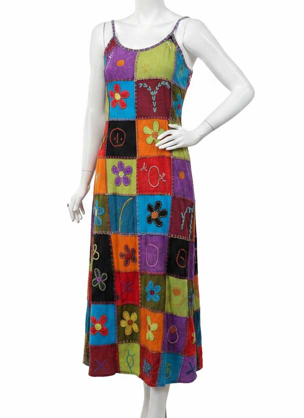 Clothing in Nepal is a leading wholesaler and manufacturer of authentic hippie-style clothing, proudly presenting this beautifully handcrafted Nepalese Patchwork Maxi Dress. Perfect for the summer season, this dress is made by skilled Nepalese artisans under fair trade practices, ensuring both quality and ethical production.