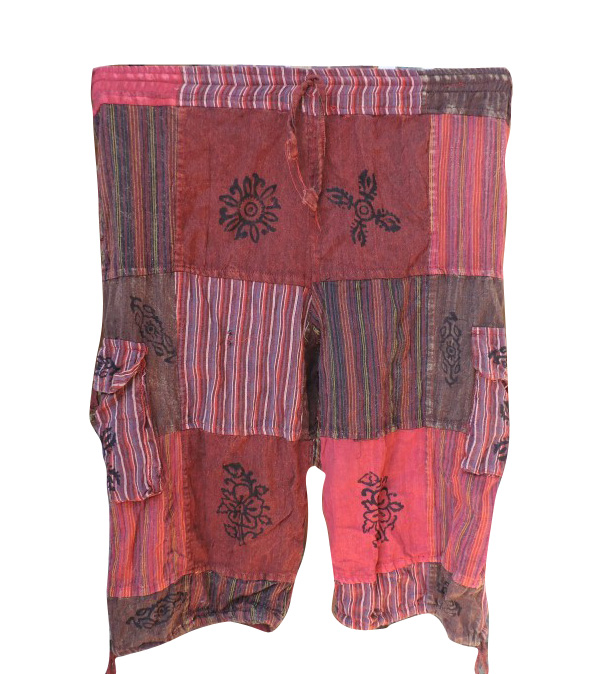 Red Tone patchwork Shorts Cargo Handmade Multi Hippie Boho Unisex Pant