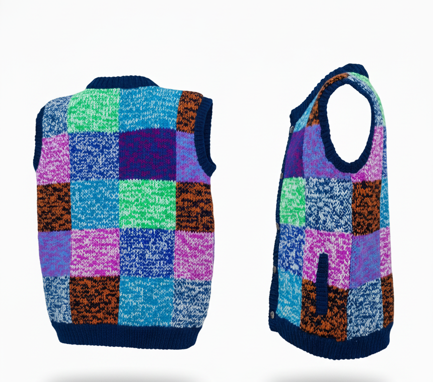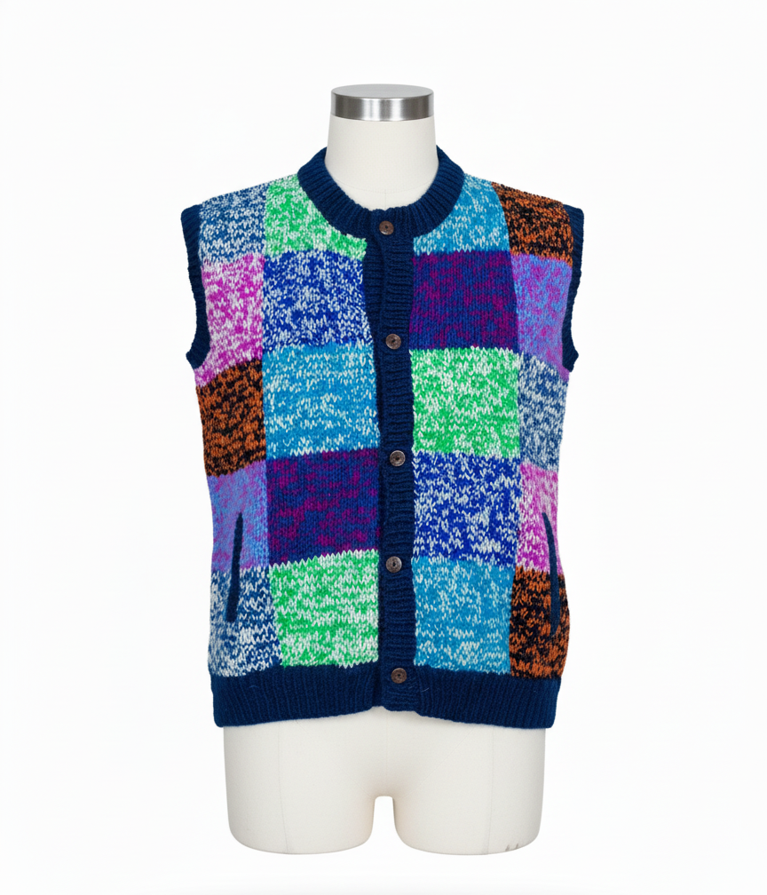 Key Features: Hand Knitted Patchwork Wool Vest – Boho Hippie Style | Wholesale Supplier
