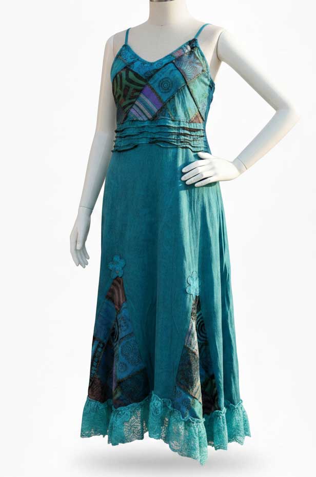 Clothing in Nepal is a leading wholesaler and manufacturer of authentic hippie-style clothing, proudly presenting this beautifully handcrafted Nepalese Patchwork Maxi Dress. Perfect for the summer season, this dress is made by skilled Nepalese artisans under fair trade practices, ensuring both quality and ethical production.
