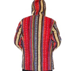 Introducing the Red Mix Inner Fleeced Gheri Jacket, a unique addition to your wardrobe from Clothing in Nepal. This handmade jacket is crafted with traditional Gheri fabric, renowned for its durability and vibrant patterns, ensuring you stand out in any crowd.
