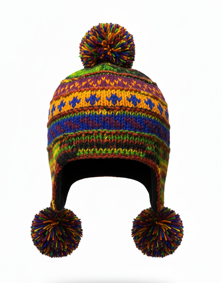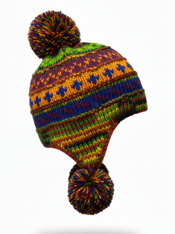 Natural Sherpa Wool Beanie with Pom Pom – Hand Knitted Pure New Zealand Wool Hat
