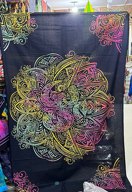 Clothing in Nepal, a leading handmade hippie clothing manufacturer and wholesale exporter offering the Prismatic Om Symbolled Cotton Tapestry is a captivating blend of vibrant colors and spiritual symbolism, featuring the sacred Om symbol at its center. Crafted from soft, durable cotton, this tapestry’s prismatic design radiates peace and harmony, ideal for meditation spaces, yoga studios, or any room in need of uplifting energy. Its intricate details and bold colors add a striking visual appeal, while the Om symbol promotes a calming, balanced atmosphere