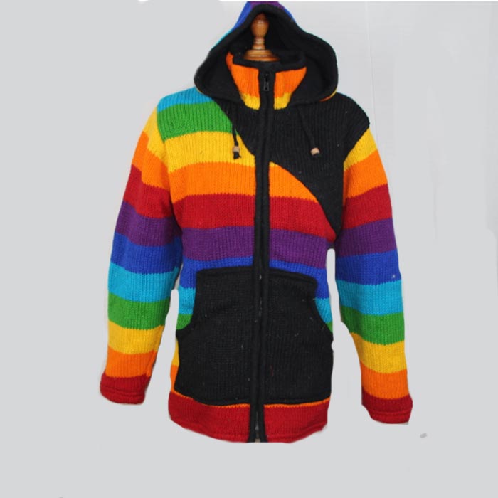 Clothing in Nepal, a distinguished name in the realm of Bohemian Clothing, proudly presents the Rainbow Explosion Winter Wool Jacket. As a leading manufacturer, wholesaler, and exporter based in the heart of Nepal, we cater exclusively to retail shops worldwide, ensuring they receive top-quality.