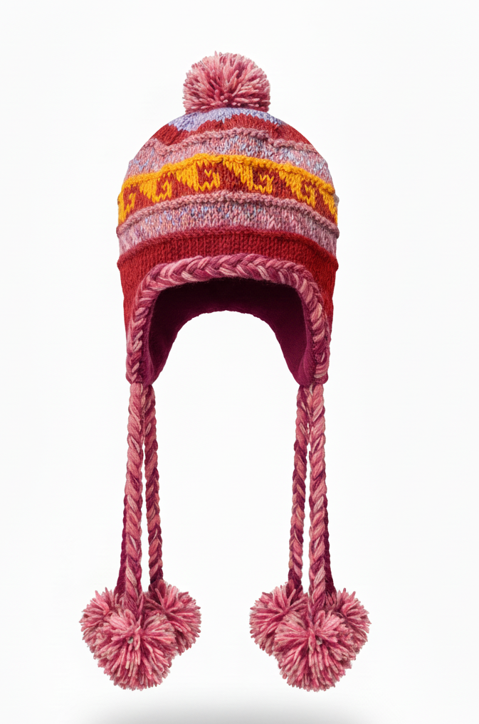 Retro Bohemian Sherpa Wool Airflap Hat | Hand Knit Long Pom-Pom | 100% Pure NZ Wool | Global Manufacturer
