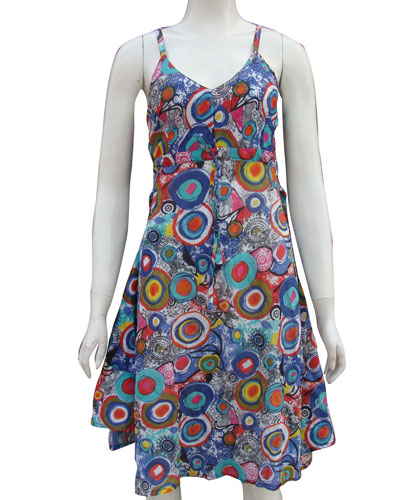 It is a sleeve dress made up of cotton printed & added bobbin elastic in back side. This is especially for summer season. It is a 100% cotton Handmade in Nepal. Available in five sizes small, medium, large, double large & extra large. This unique design is for girls & women’s & always will cme different kind of color.