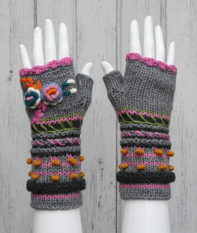 Traditional Nepal Hand-Knit Fingerless Wool Gloves | Ethical Hippie Winter Fashion